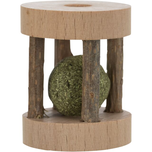 - Robustesse : La balle solide en bois est durable et résiste aux morsures, assurant une longue durée de vie au jouet.